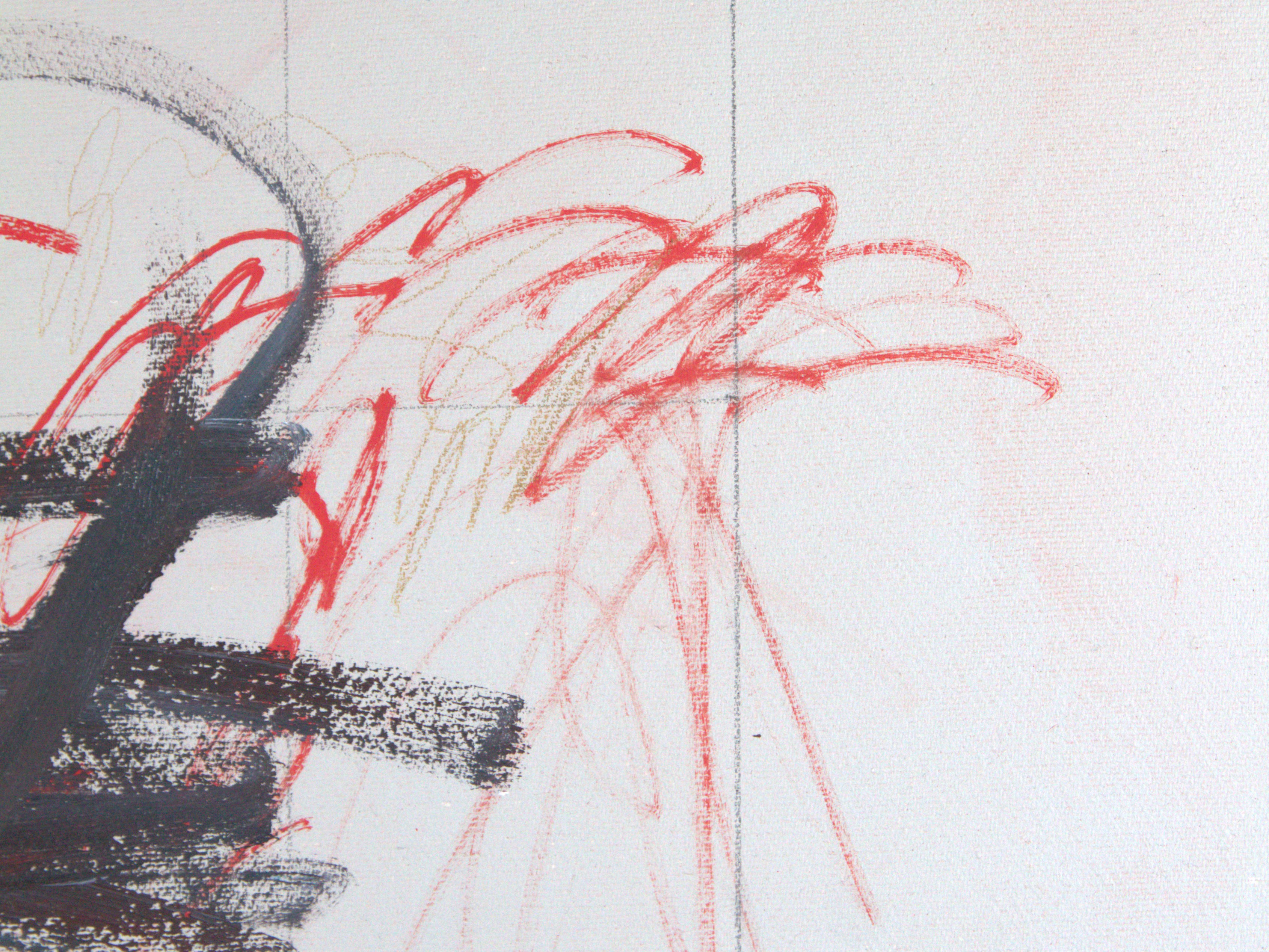 This is the subtitle. It can be longer and more descriptive. 100×80 cm. This is the description. Within a rigid 10×4 grid, repetition is disrupted by gestural marks that overflow structure.
